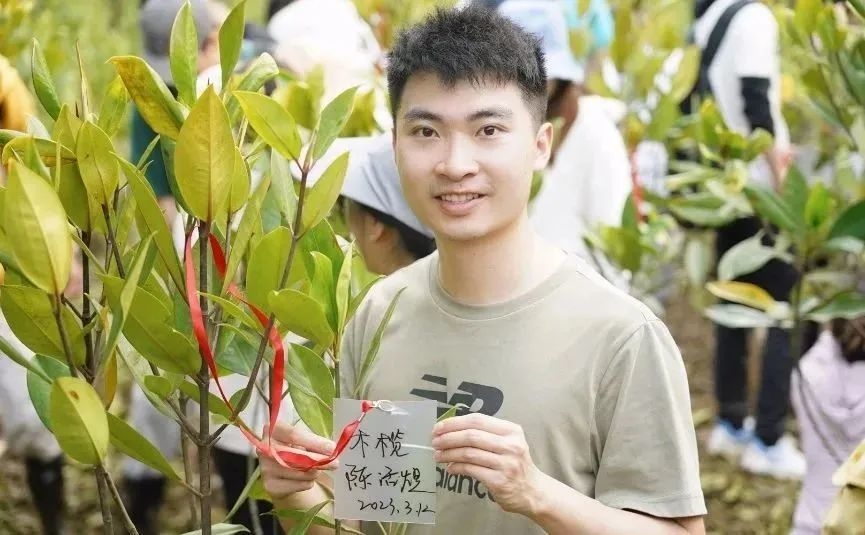 “……阳春三月,万物复苏,在生机勃勃的植树节,我们支部一齐出发前往珠海的红树林进行植树活动。我与我的队友们种下了四棵小树苗。看着种好的小树苗,想象着它将来的茁壮成长,我感受到了催人向上的勇气。我们带着我们的期望、用我们的爱心滋养树苗的成长,也为我们共同的家园增添了一份小小的力量……”