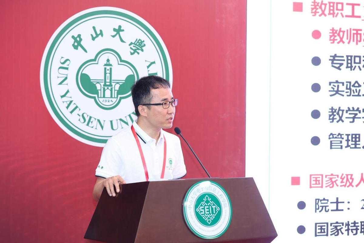 学校信息学部主任、光电材料与技术国家重点实验室主任邓少芝教授为校友们介绍了学院的学科设置,以及这些学科的历史由来。