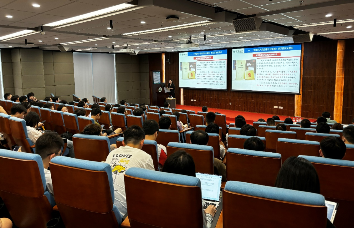 邓华副教授的报告首先系统回顾了《条例》修订历程和逻辑,结合习近平总书记关于党的纪律建设重要论述,深入阐释了《条例》修订的历史背景。随后,她分层逐章地领学《条例》的主旨要义,并结合丰富的真实案例生动解读政治纪律、组织纪律、廉洁纪律、群众纪律、工作纪律和生活纪律的内涵要求。她提到,学习贯彻落实《条例》要与学习习近平新时代中国特色社会主义思想相结合、要与学习党章及其他党内法规相结合。她强调,党的纪律是党员干部约束自身行为的标准和遵循,师生党员干部要深入逐章逐条学习《条例》,强化纪律意识和规矩意识,切实做到学纪、知纪、明纪、守纪。
