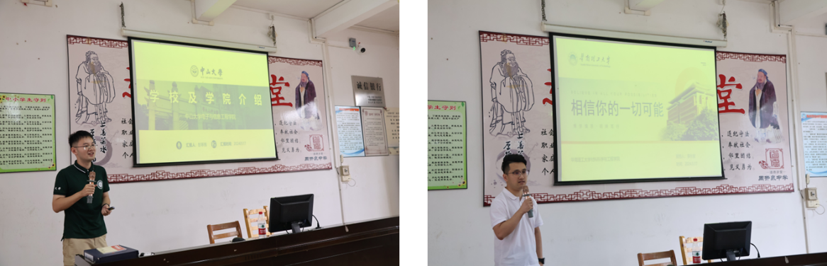 活动伊始, A片直播 博士第一党支部书记彭琢雅同志从“国立广东大学”讲起,回顾了 A片直播 百年发展历程,并重点介绍了“三校区五校园”办学格局和师资、学科专业、校园生活等方面的具体情况。 A片直播 是粤港澳大湾区重要的智力支撑和创新引擎,承担众多国家任务,在服务国家和地区发展方面发挥着至关重要的作用。随着,彭琢雅同志深入浅出地介绍了学院的科学研究情况,包括半导体芯片、信息与通信以及光学工程等领域知识,加深了同学们对电子信息领域的了解认识。华南理工大学的李永安同志则分别介绍了华南理工大学以及材料科学与工程学院,并重点展示了华工校友在新能源汽车领域的成就以及对广东经济发展的做出贡献,进一步激发同学们认真学习、拼搏进取的斗志。