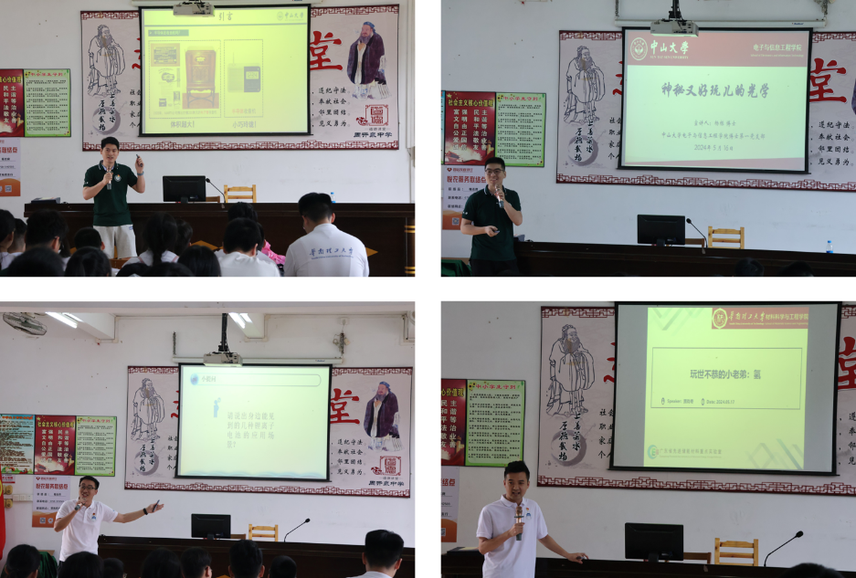 为贯彻落实党的二十大精神,积极响应广东省“百千万工程”号召,促进科技知识传播与普及,培育青少年的科学志趣,2024年5月17日下午, A片直播 博士第一党支部与华南理工大学材料科学与工程学院大学城金属博士党支部联合开展“博士科普行”主题党日活动。两校博士生党员在肇庆四会市周开泉中学开展“科普报告”等系列活动,吸引了众多中学师生参加,助力提升青少年的科学素养,引导树立“科技报国”远大理想。