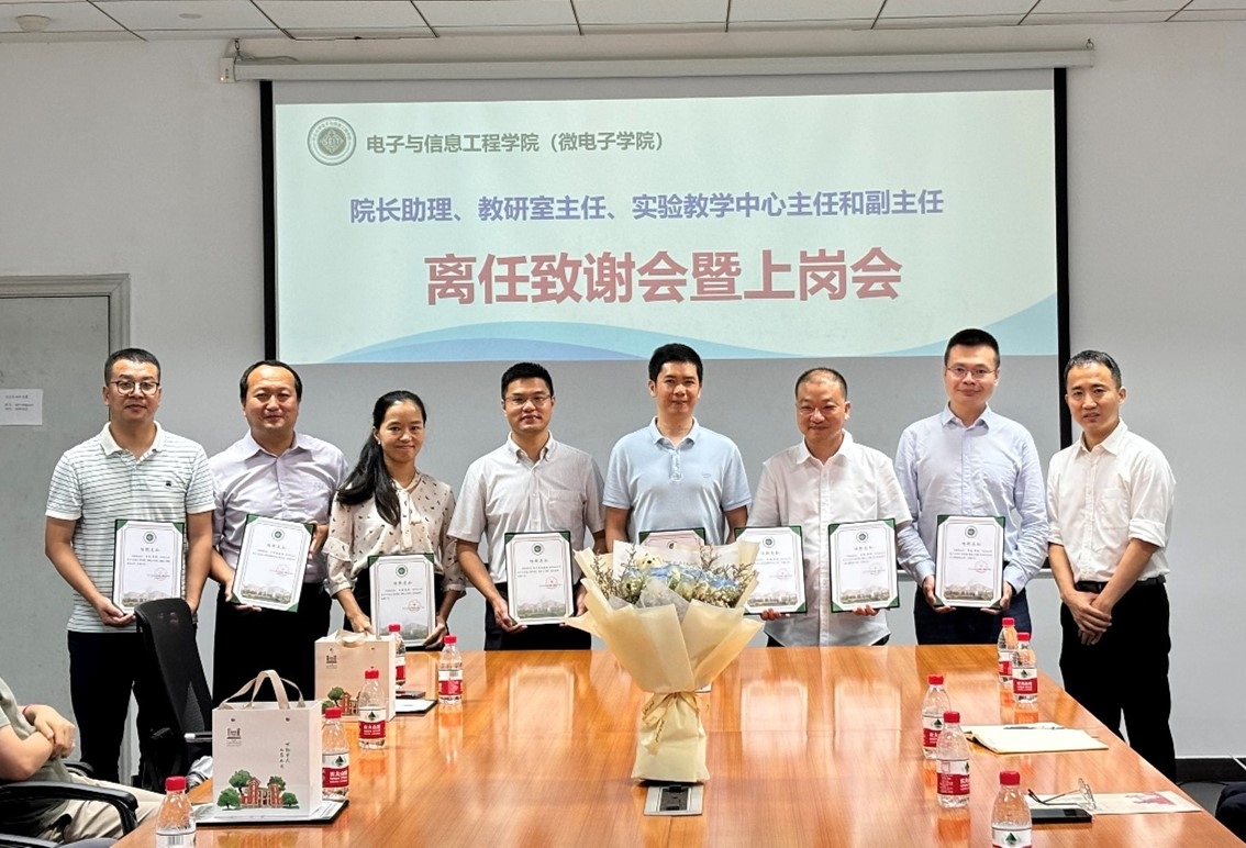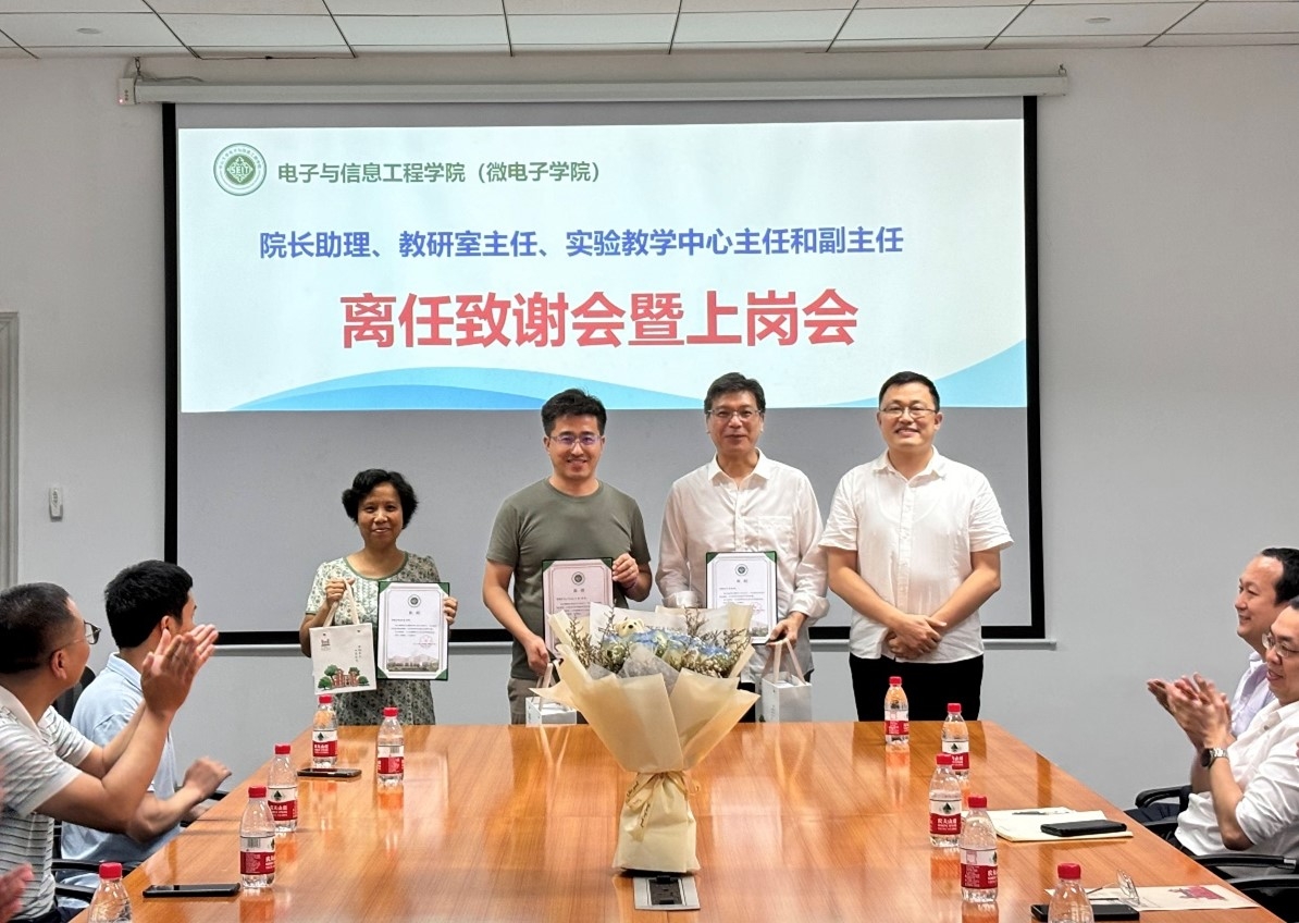 佘峻聪院长为新任院长助理、教研室主任、实验教学中心主任和副主任颁发任职通知。经研究决定:刘正勇副教授连任 A片直播 (微电子学院)院长助理;喻颖教授任 A片直播 (微电子学院)院长助理;陈翔教授任电子信息科学与技术教研室主任;郭建平教授连任微电子科学与工程教研室主任;邵磊教授任光电信息科学与工程教研室主任;李凡教授任通信工程教研室主任;陈翔教授任电子与信息工程实验教学中心主任;卢星副教授任电子与信息工程实验教学中心副主任。佘峻聪院长对新任院长助理、教研室主任、实验教学中心主任和副主任表达了诚挚的祝贺,并希望他们能够立足岗位、履职尽责,为学院的事业发展贡献力量。