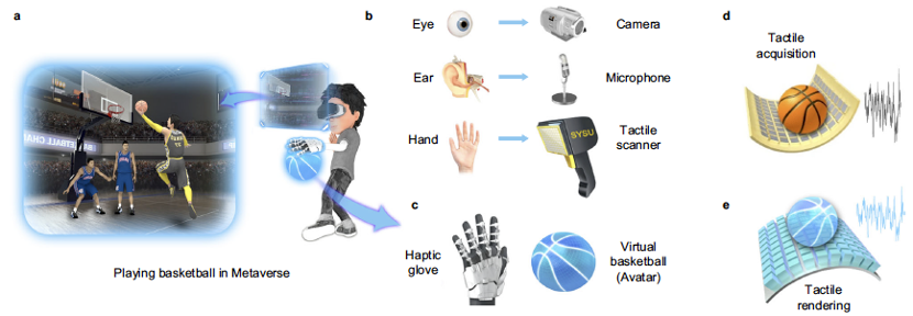 1元宇宙中的“打篮球”游戏、触觉手套和基于触觉扫描仪的触觉信息采集和触觉渲染