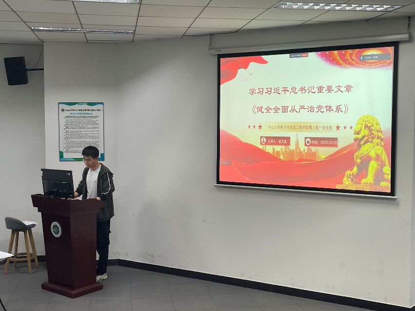 在会议的最后,梁文武同志带领支部党员学习了习近平总书记的重要文章《健全全面从严治党体系》。通过系统学习,支部党员深刻认识到全面从严治党是新时代党的建设的总抓手,纷纷表示要将学习成果转化为实际行动,提升思想淬炼与政治自觉,强化纪律意识与自我约束。