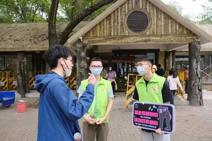 园区内动物场馆众多,游客摩肩接踵,工作环境较为复杂且艰苦。在引导客流的同时,同志们通过手持地图为游客提供分区指引和游览建议,并善意地劝阻插队、投喂动物等不文明行为。随着园内客流量持续增加,轮岗方式尚不能满足志愿服务需求。对此,轮休的同志自愿承担起物资派送、信息发布等工作,并时刻关注工作群发布的“缺人”信息,及时补位,确保志愿服务平稳、持续地进行。凭借紧密高效的沟通,同志们协助园内安保、饲养员等维持了游览秩序,并顺利地帮助多名游客找到走失的儿童。